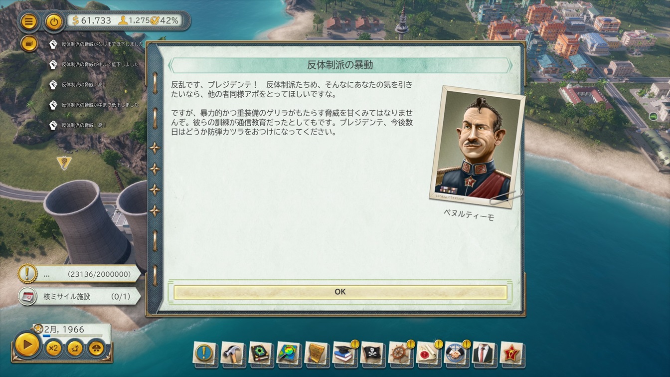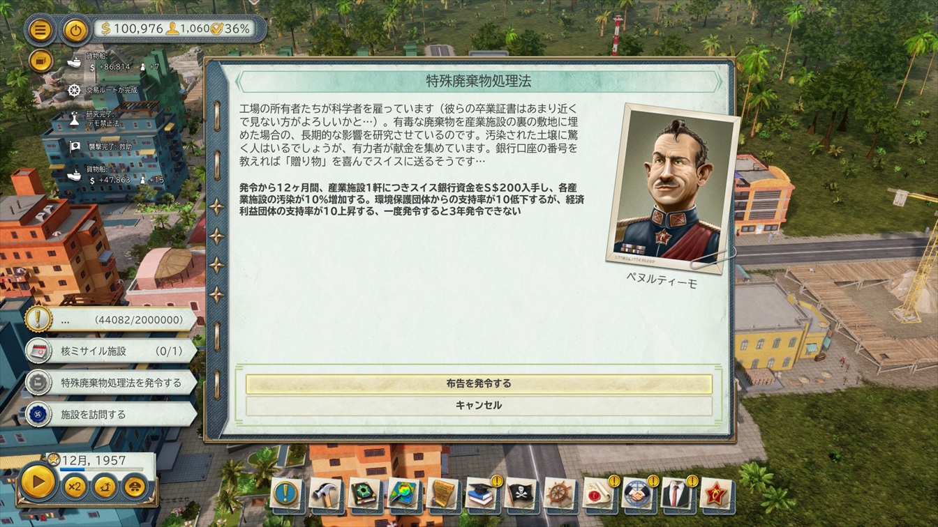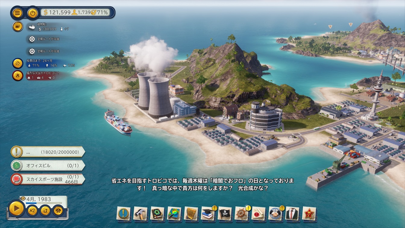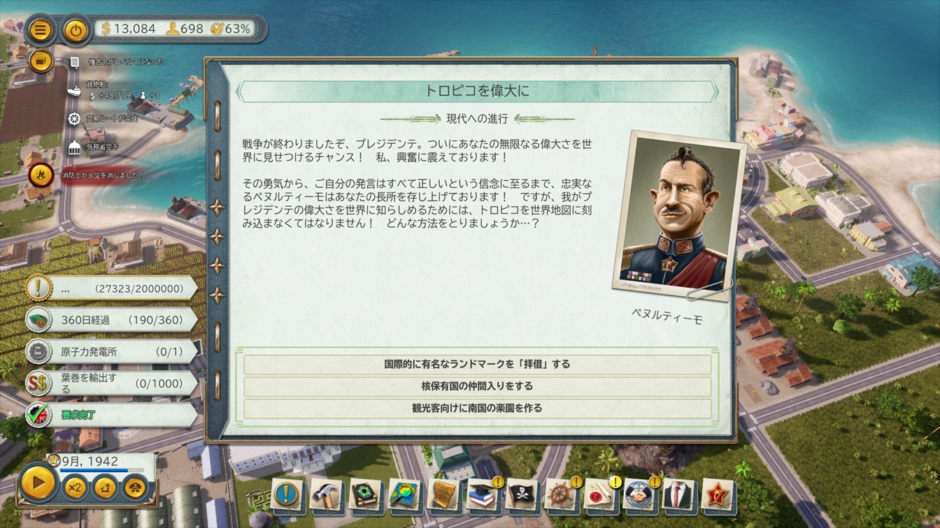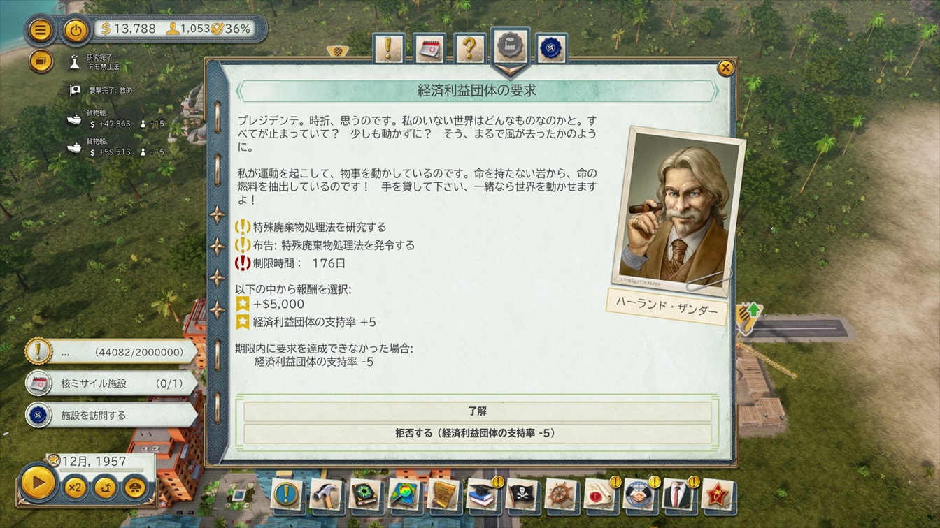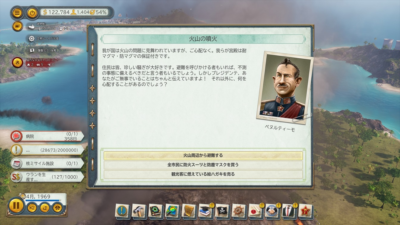 さて、引き続き島の発展を進めていかなければいけない訳ですがここ冷戦時代に置いてもメインタスクが発生しています。