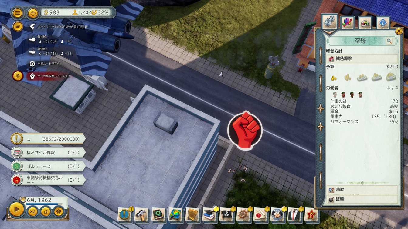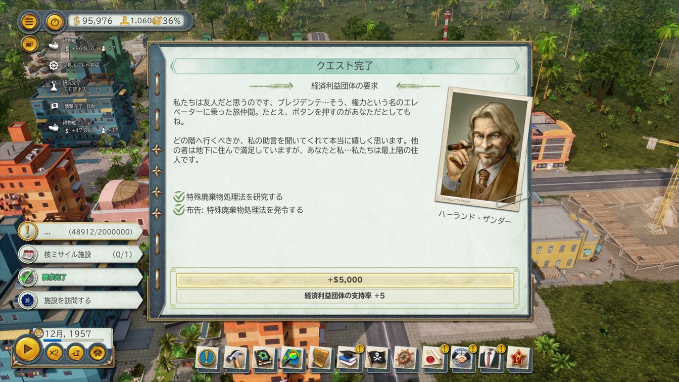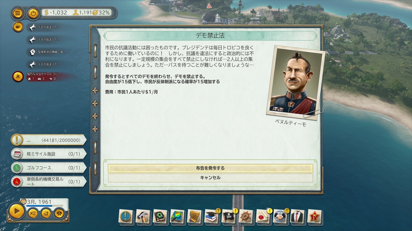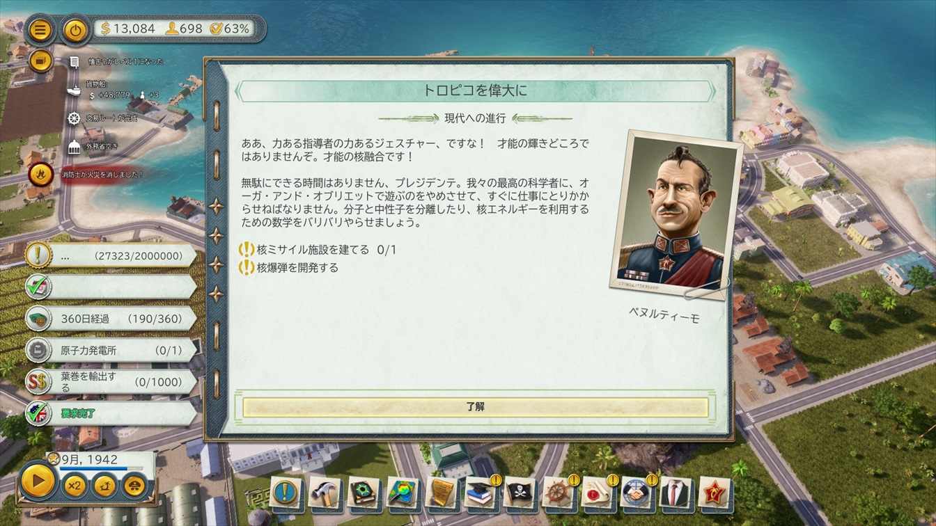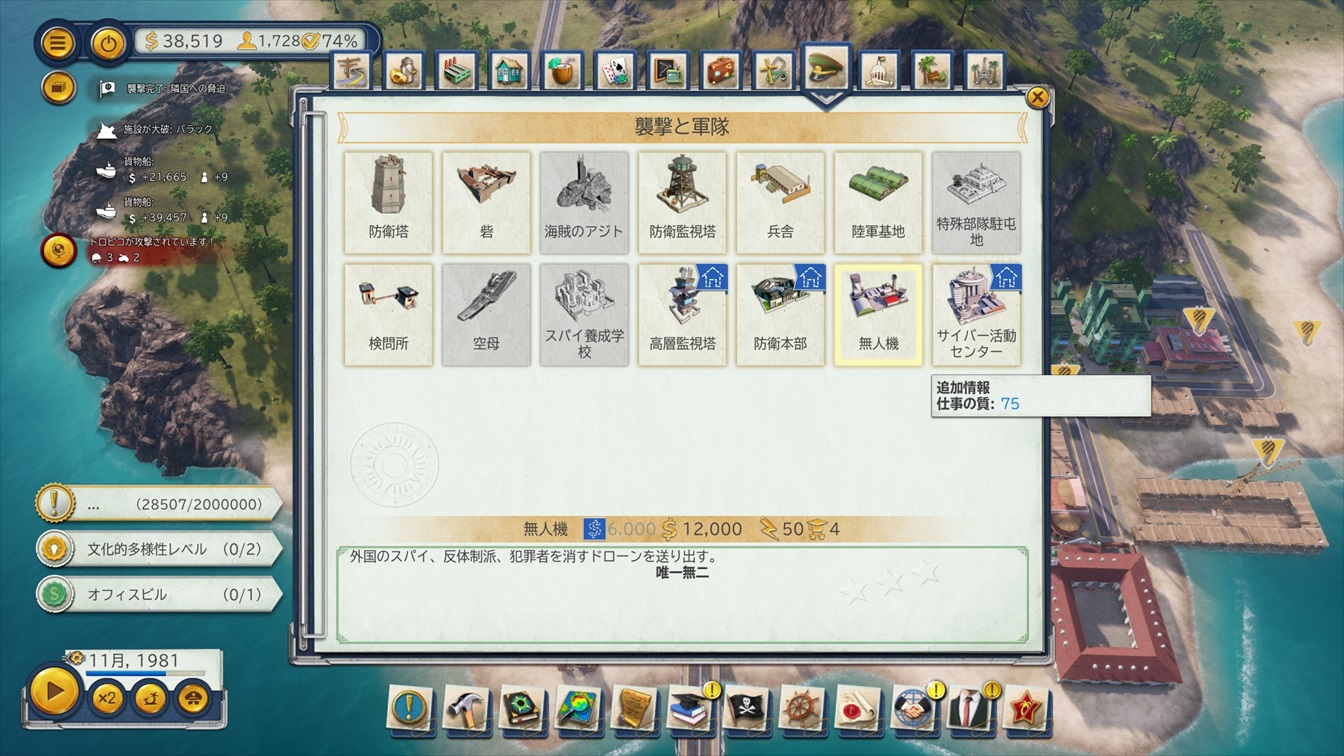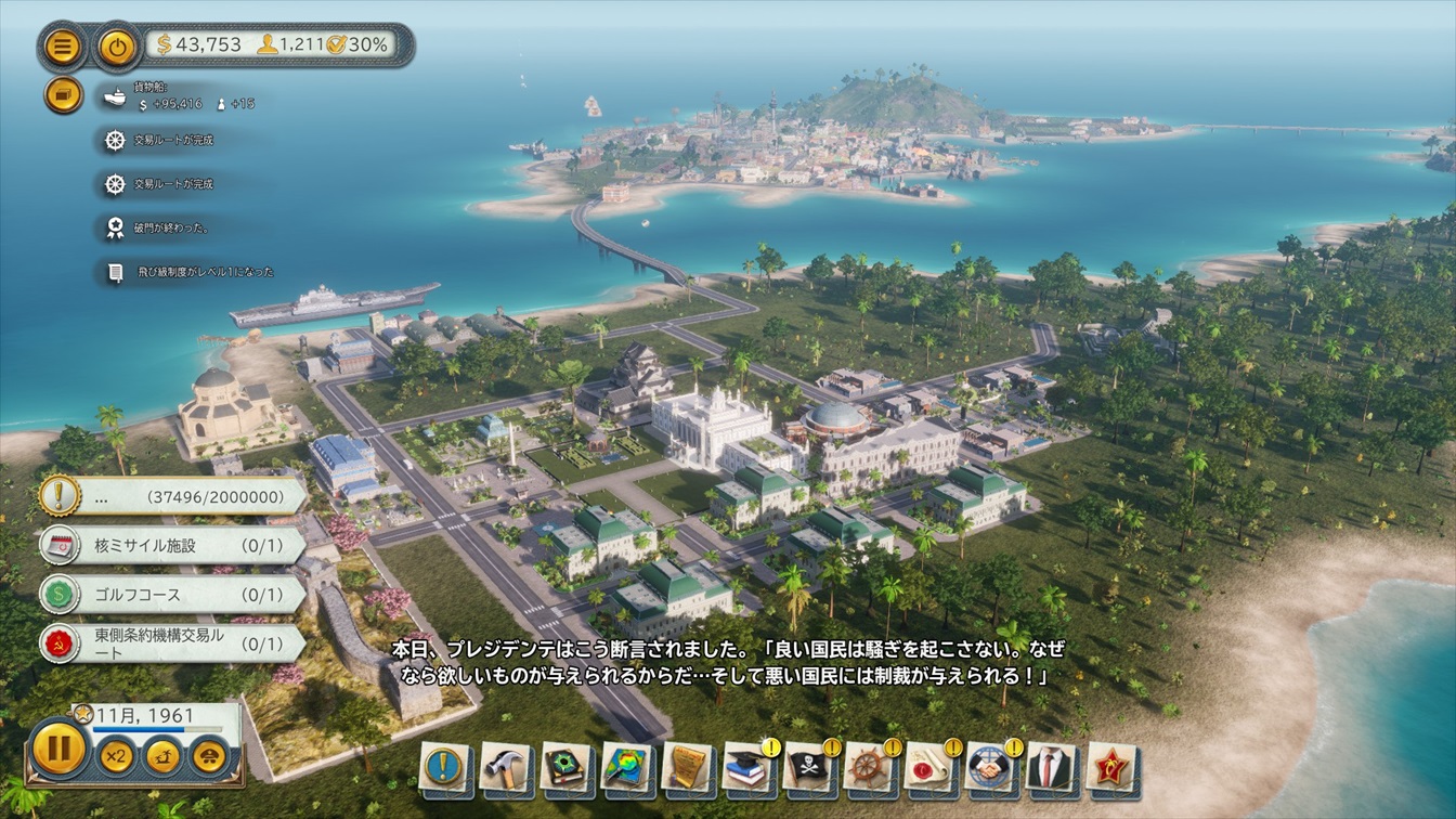 さて、引き続き島の発展を進めていかなければいけない訳ですがここ冷戦時代に置いてもメインタスクが発生しています。
