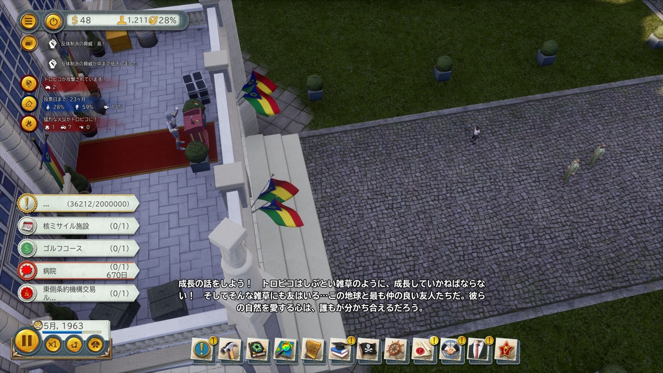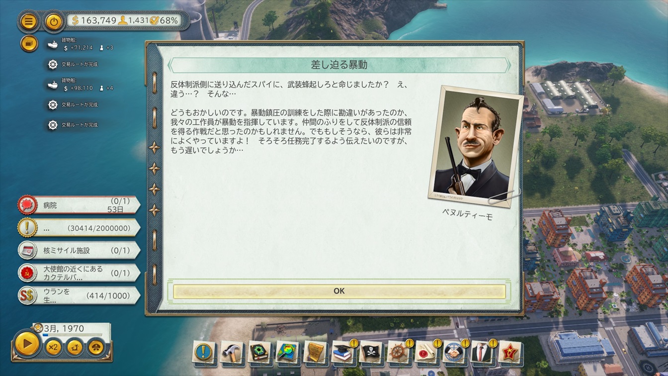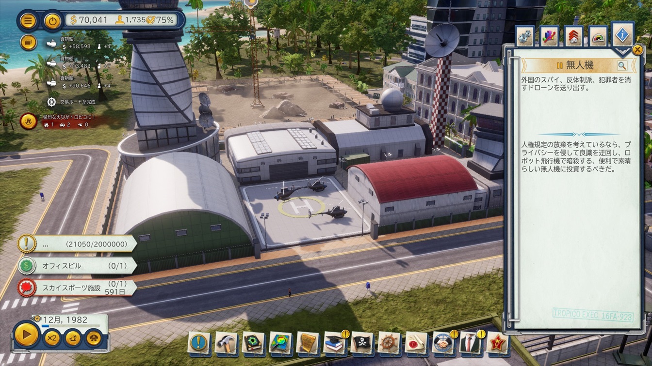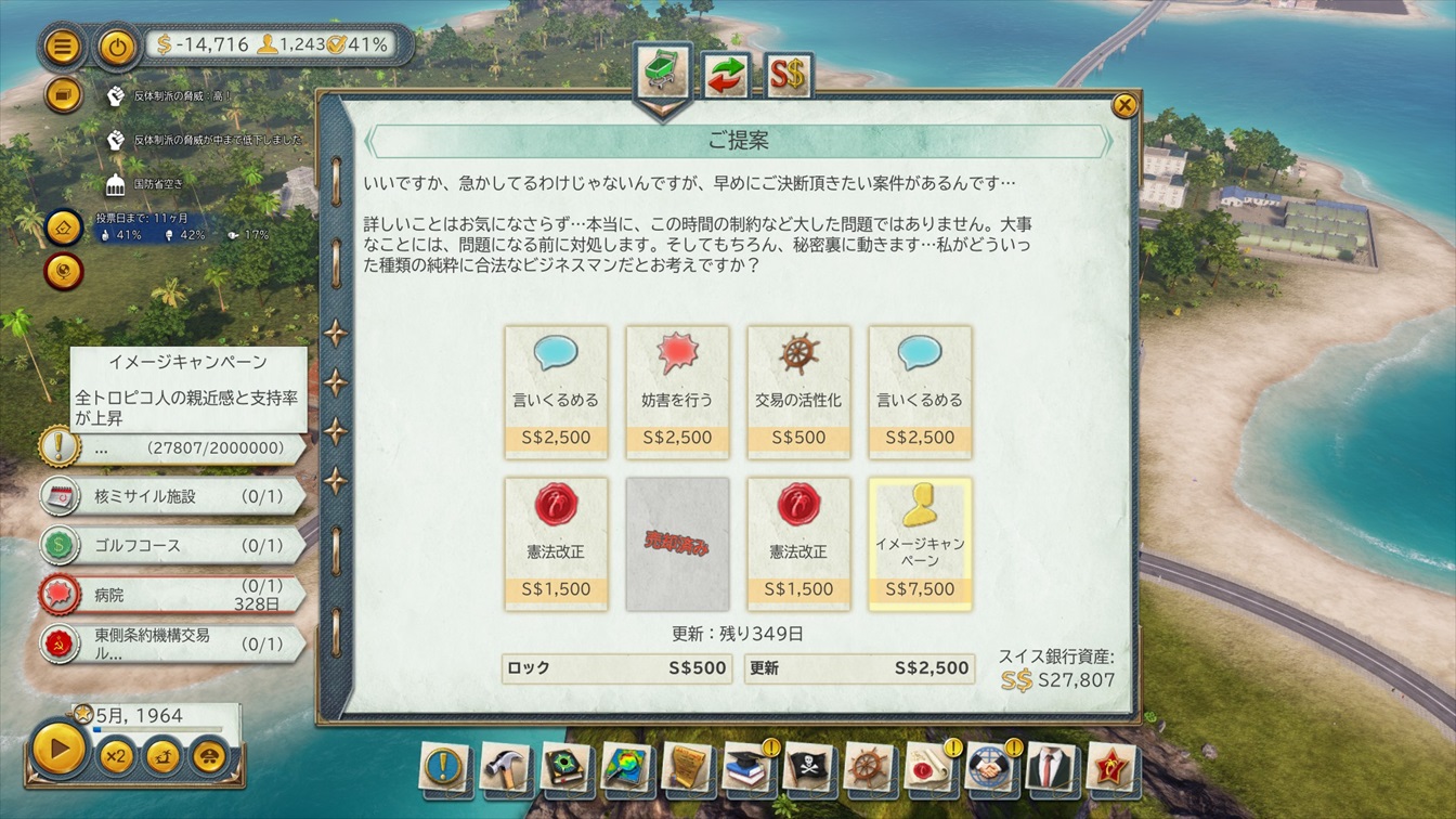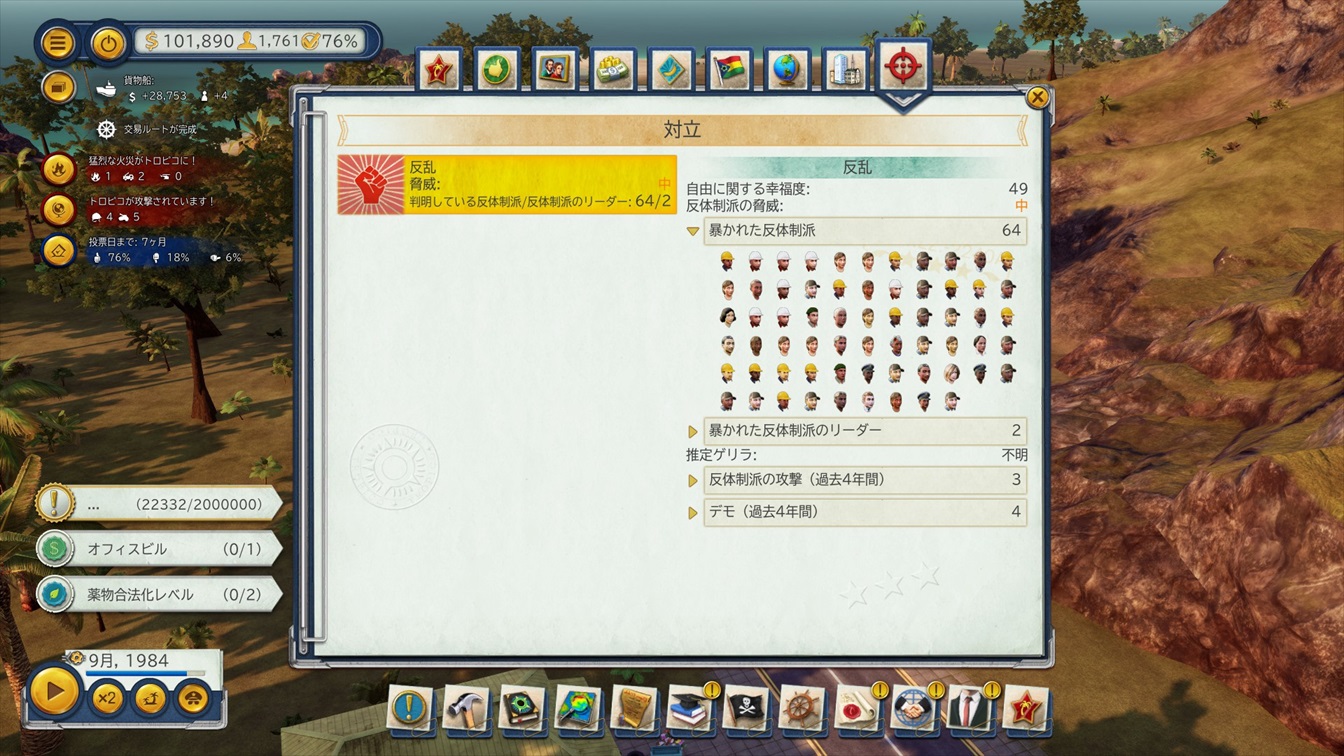 さて、引き続き島の発展を進めていかなければいけない訳ですがここ冷戦時代に置いてもメインタスクが発生しています。