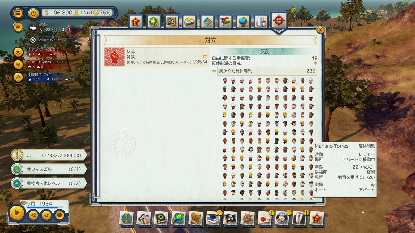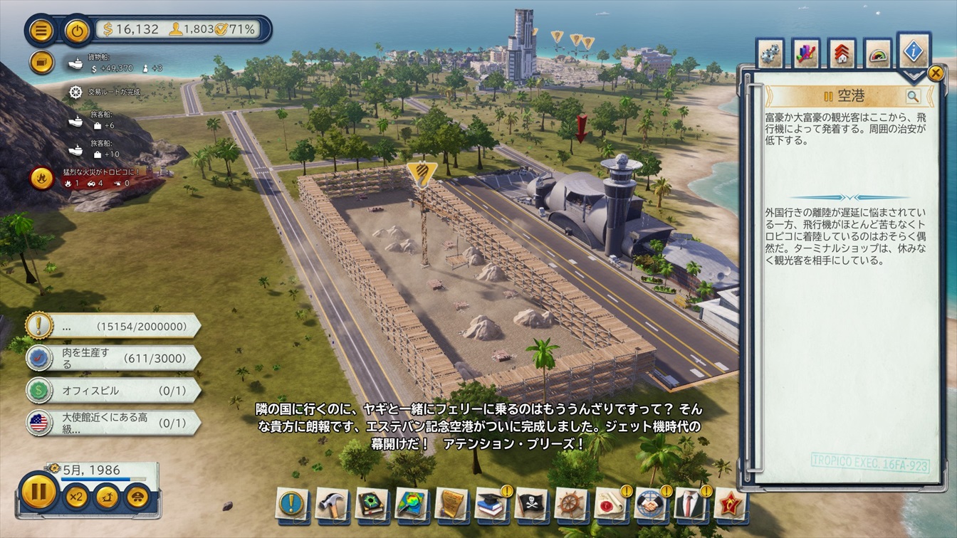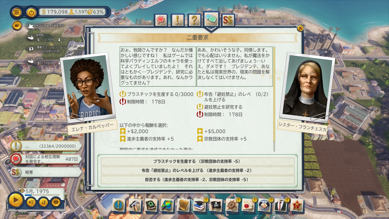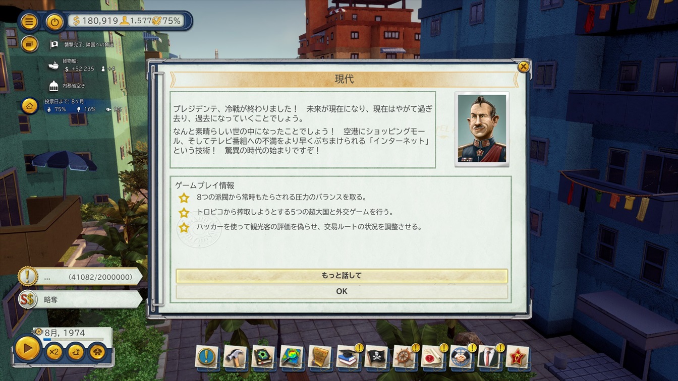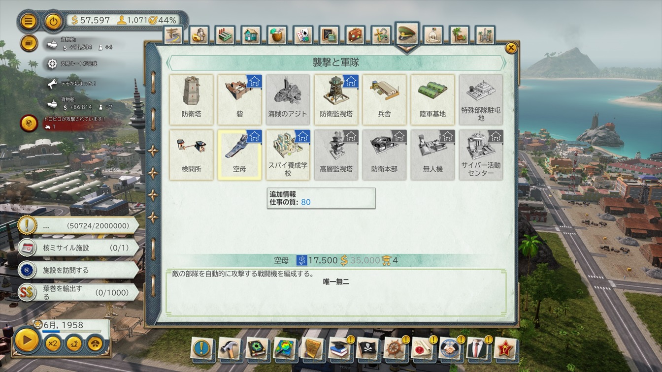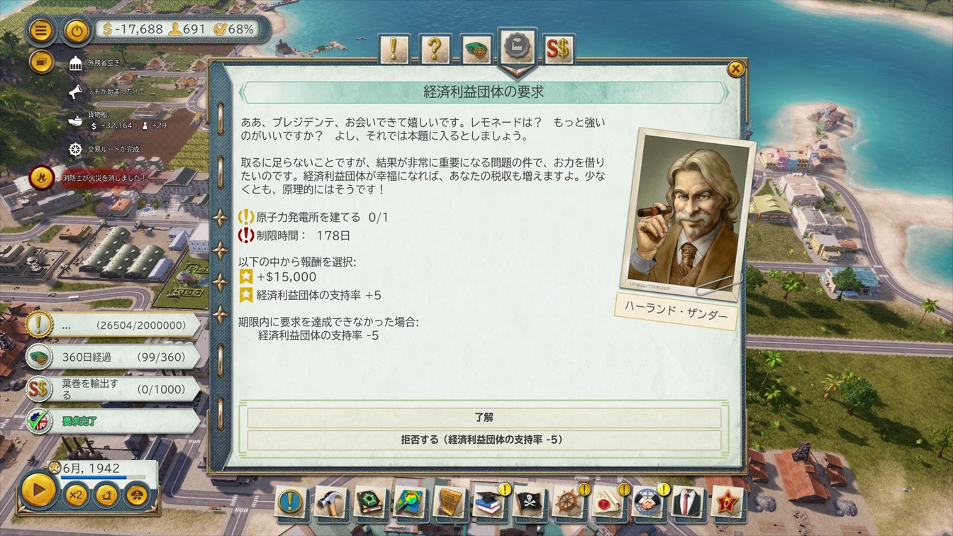 さて、引き続き島の発展を進めていかなければいけない訳ですがここ冷戦時代に置いてもメインタスクが発生しています。