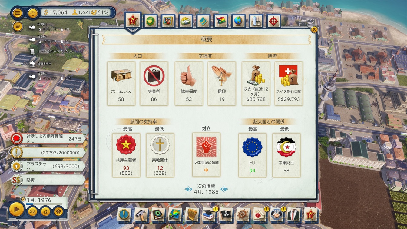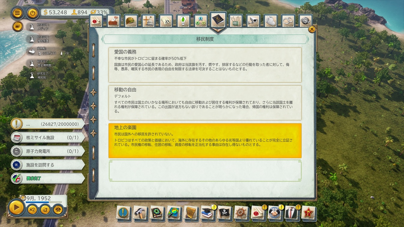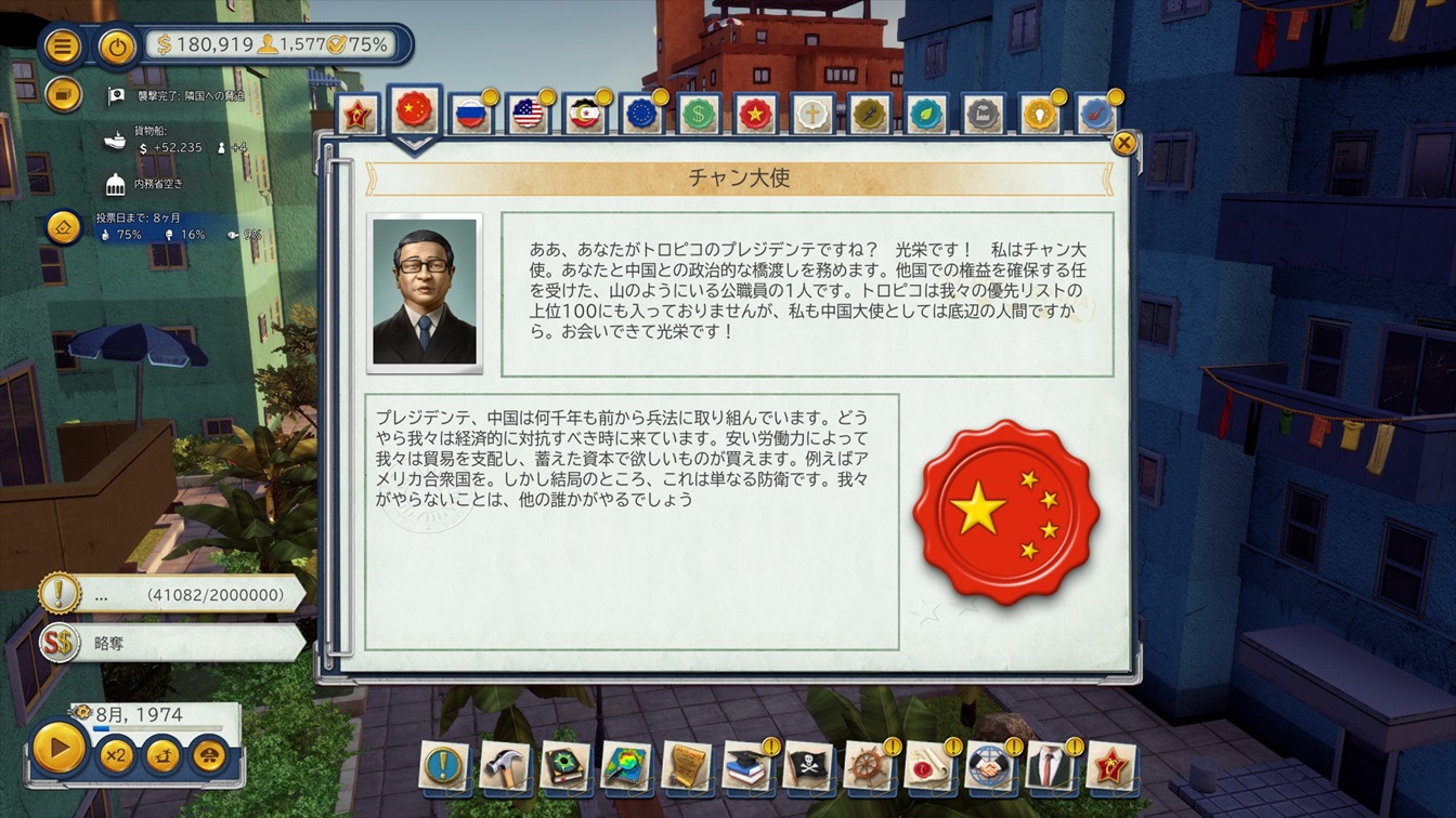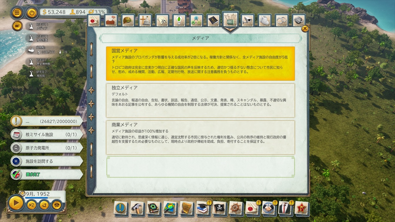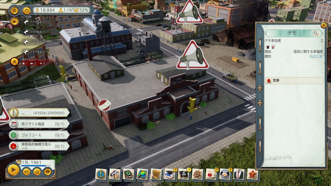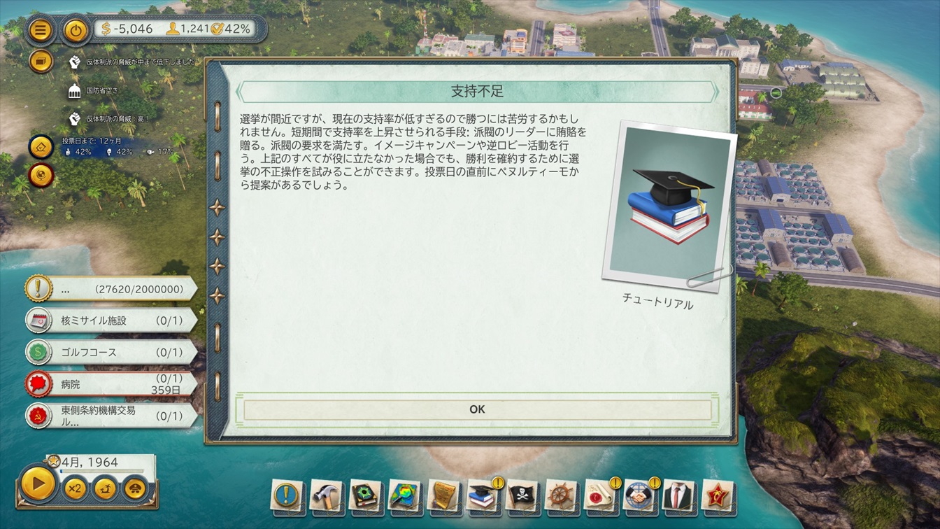 さて、引き続き島の発展を進めていかなければいけない訳ですがここ冷戦時代に置いてもメインタスクが発生しています。