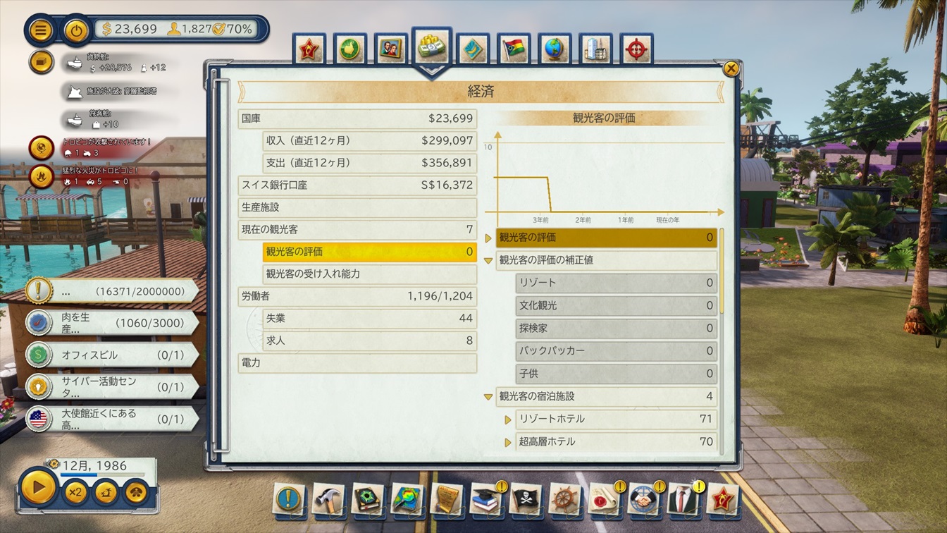 何なら三年くらい前を最後に観光客の評価が0を張り付いて今いる観光客が総数7名とかいうとんでもねぇー赤字経営垂れ流しているのだが???