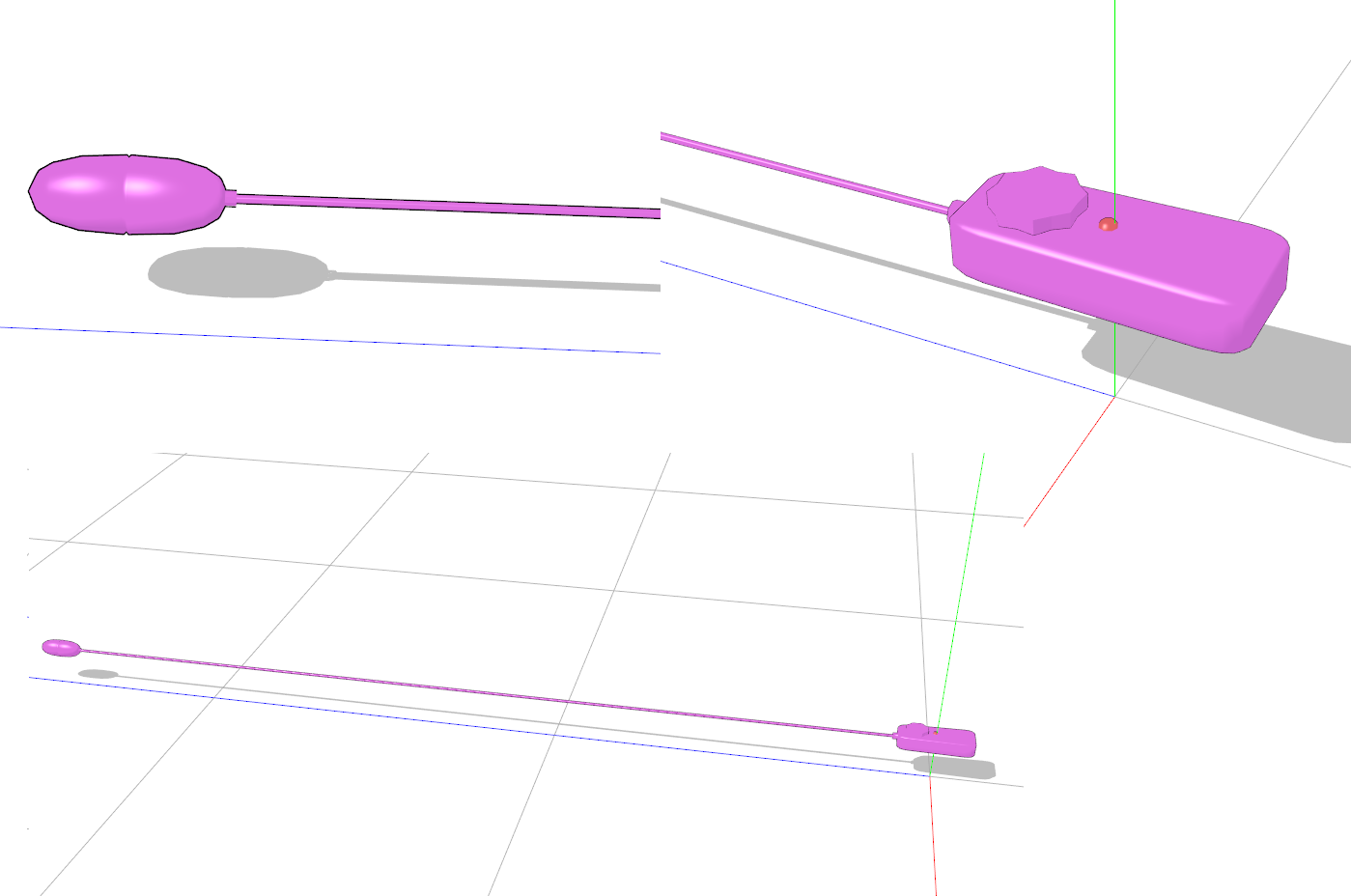 早い話、コードの剛体のサイズがバイブやリモコンより大きくて剛体と剛体の間が結果的に凸凹とした形になっているのがよくないので球体からカプセル状とかにして高さを抑えてみました。