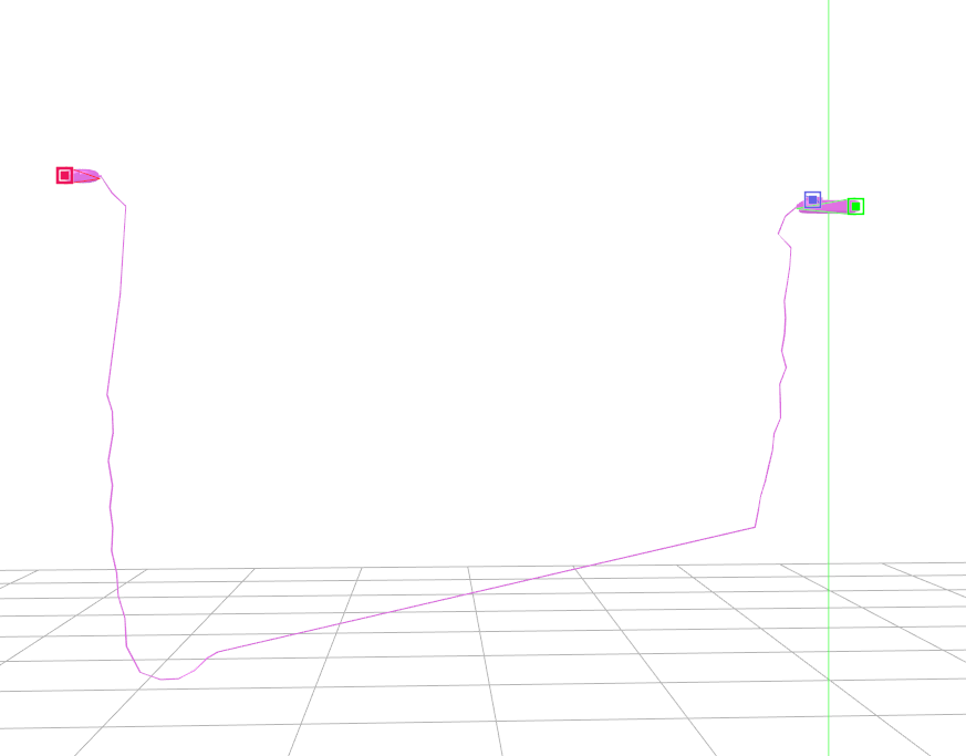 最初にJointの設定をしたとき、XYZ軸全部において-72〜72の範囲で回転制限を加えていました。その結果、XYはともかく回転する必要ないZ軸方向に何らかの理由で回転が加わり、そして捻れたコードをより戻して解消するかのように反対方向にZ軸が回転。その回転によって地面の上を転がるものの、再び回転制限以上にネジ曲がるものだから更に反対側に向かって捻れを解消するかのように回転。それが延々とループしてしまってまるで地面の上をコードがゆらゆらと地面の上をのたうちまわってしまっていたという訳です。はぁ〜〜〜地面の上を転がるほどちゃんとしっかり物理演算していたとは気づかなかった。