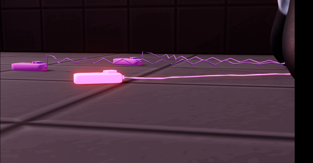また新しい問題が生じまして、確かにコードはギザギザせずまっすぐ地面の上を這うようにはなりましたがなぜか地面の上にあるコードが勝手にゆらゆらと地面の上をのたうち回り始めました。